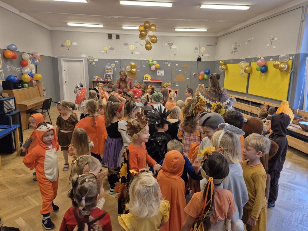 W naszym przedszkolu odbył się Bal Pani Jesieni. Przedszkolaki wesoło bawiły się przy jesiennych piosenkach, brały udział w tanecznych zabawach, konkurencjach sportowych i zagadkach o tematyce jesiennej. Nie zabrakło również samej Pani Jesieni, która odwiedziła dzieci z koszem pełnym darów natury. Był to dzień pełen radości i jesiennych barw!