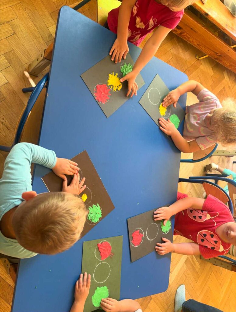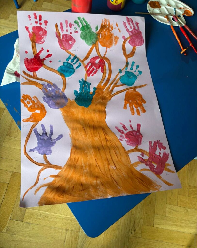 Biedronki uczestniczyły w ,,Tygodniu o Budowaniu Relacji”, podczas którego rozmawiały o przyjaźni, życzliwości i wzajemnej pomocy. Dzieci wspólnie się bawiły, dzieliły zabawkami oraz rozwiązywały drobne konflikty. Na zakończenie tygodnia przedszkolaki wykonały plakat pt. „Drzewo Przyjaźni” – każde dziecko odbiło swoją dłoń pomalowaną farbą, tworząc kolorowe liście symbolizujące zgodę i przyjaźń.