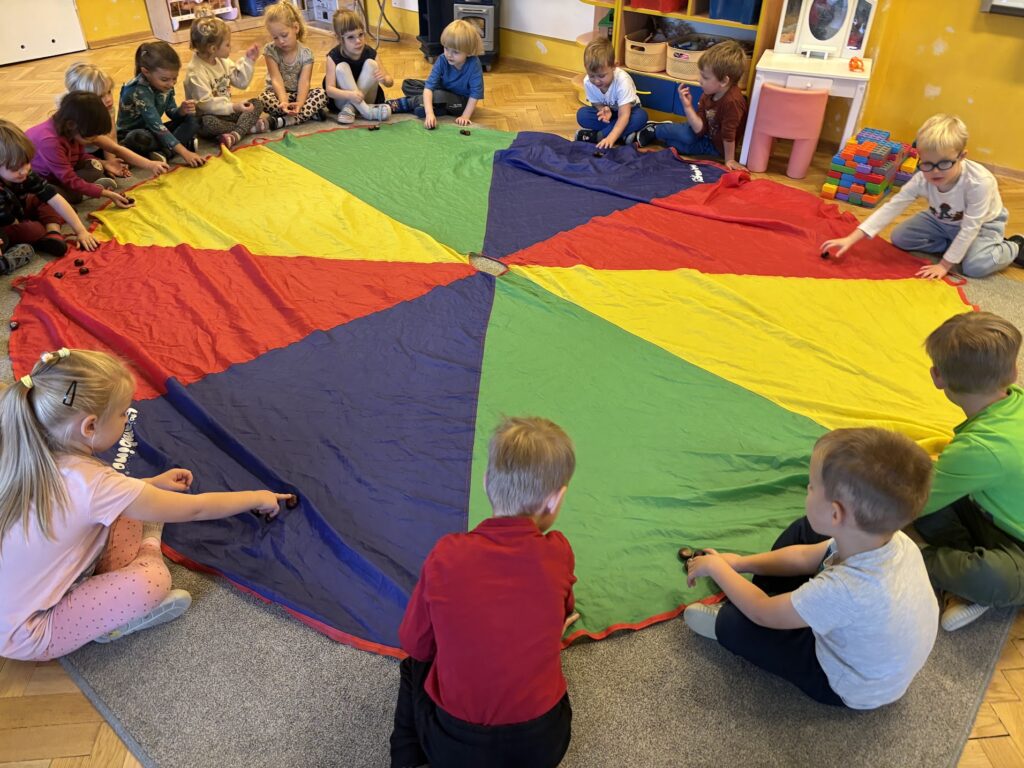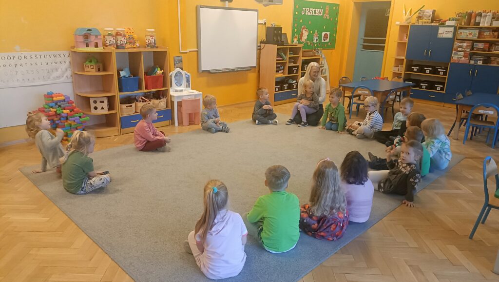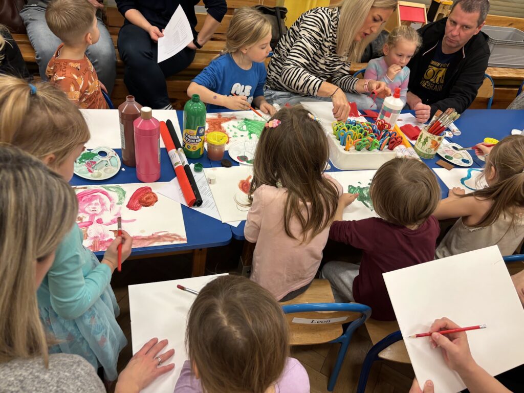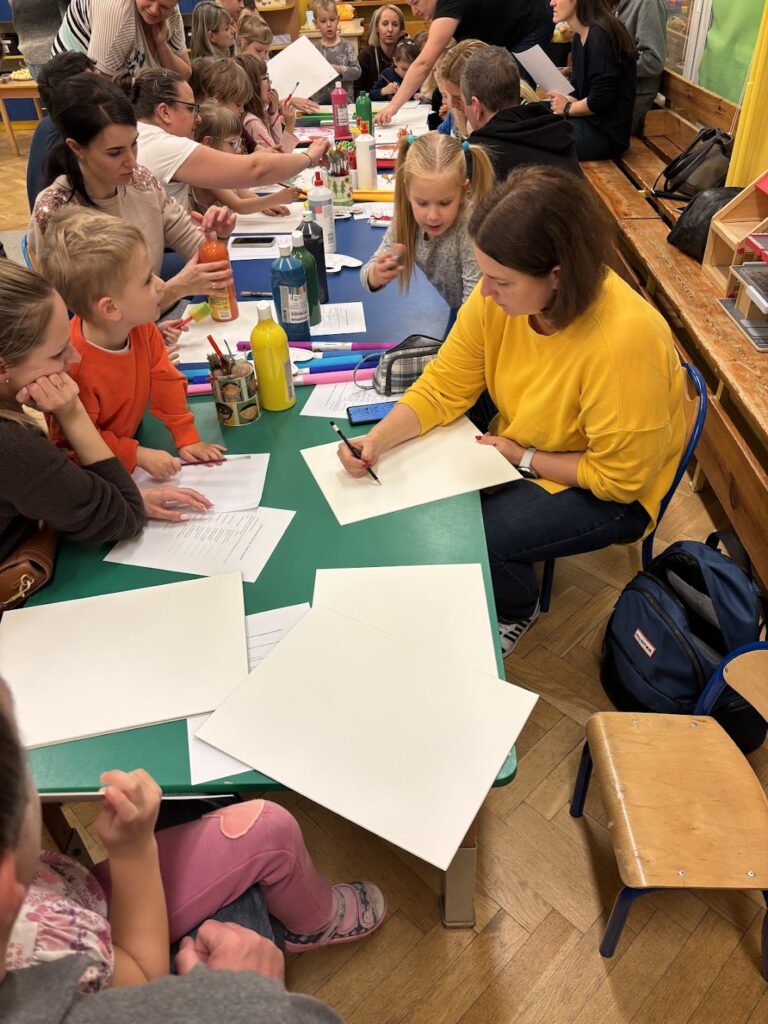 Podczas jesiennych warsztatów dzieci zaprezentowały występ artystyczny. Przedszkolaki śpiewały piosenki jesienne, patriotyczne oraz utwór w języku angielskim z radością pokazując swoje umiejętności przed rodzicami. Następnie dzieci wspólnie z rodzicami pracowały metodą kreatywnego myślenia SCAMPER. Wykorzystując wyobraźnię, stworzyły zupełnie nową, niepowtarzalną wersję baśni pt. ,,Czerwony Kapturek”. Efektem tej twórczej pracy były barwne prace plastyczne, które na koniec zaprezentowano w formie małej wystawy. Warsztaty przyniosły wiele radości, integracji i kreatywnej zabawy.