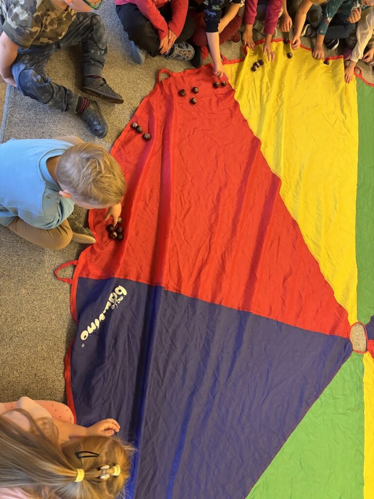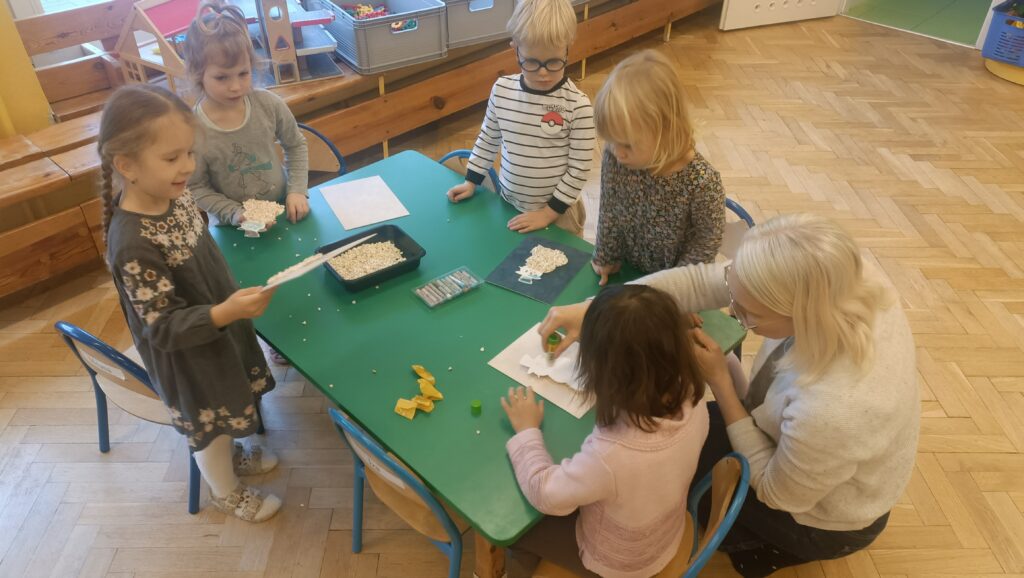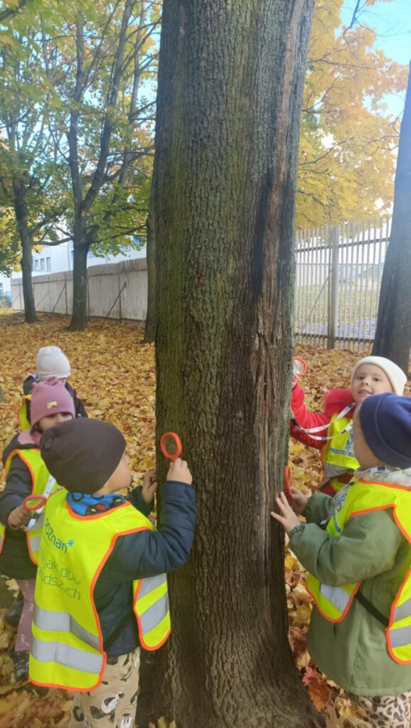 Na przełomie października i listopada nasza grupa realizowała projekt edukacyjny pt. „Drzewo (Las)”. Dzieci poznawały budowę lasu, jego piętra oraz mieszkające tam zwierzęta. Rozróżniały liście i owoce drzew oraz odkrywały dlaczego drzewa gubią liście przed zimą.