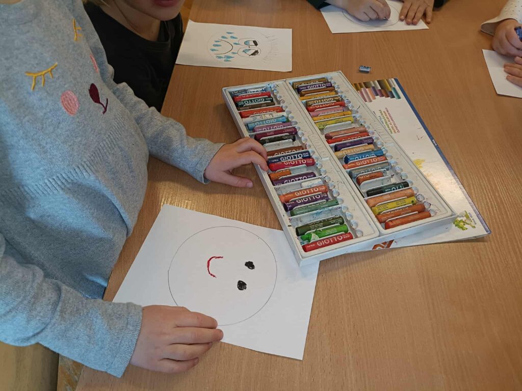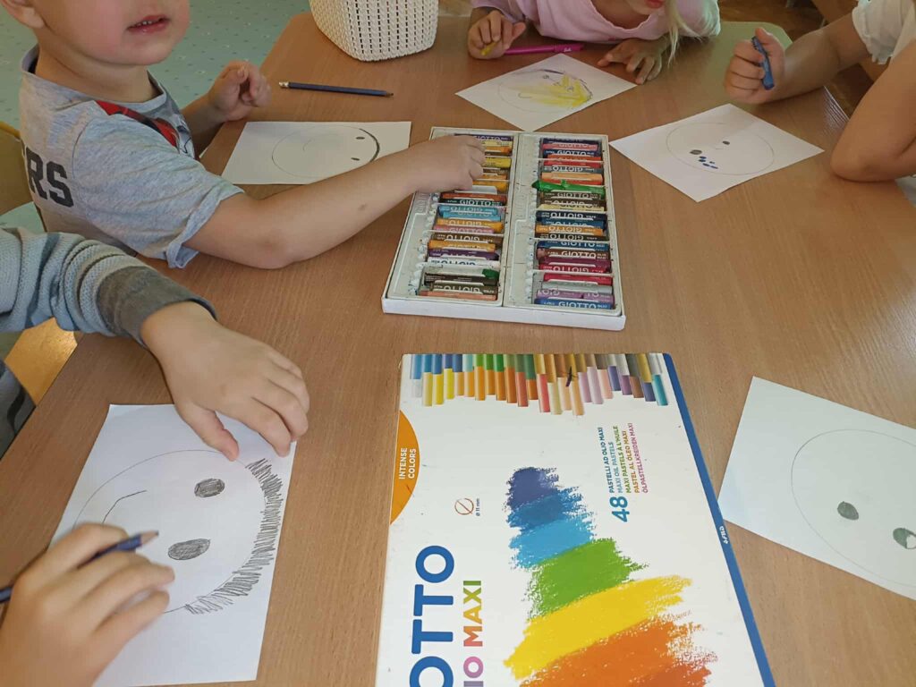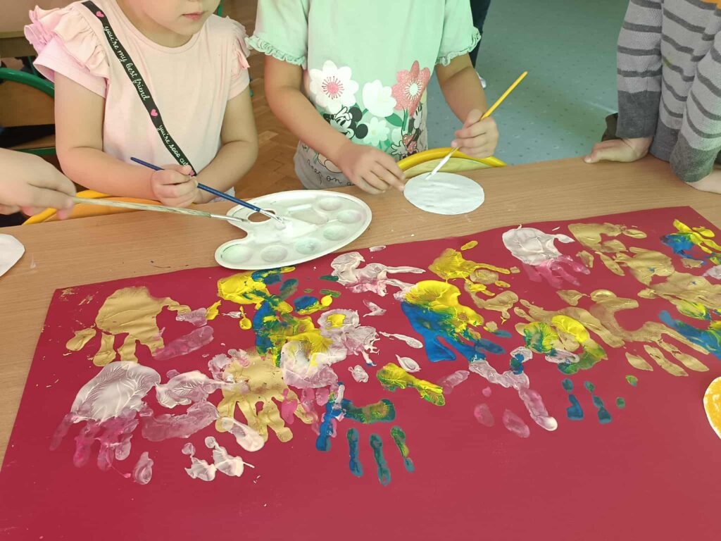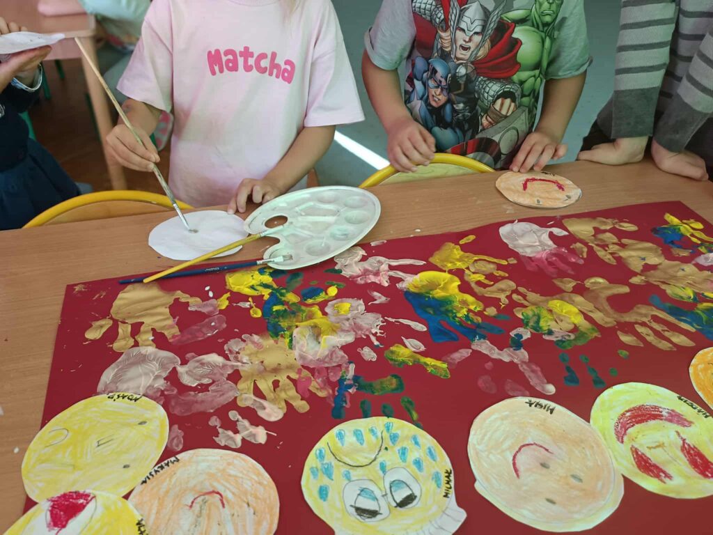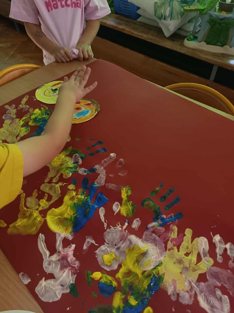 W ramach podsumowania tygodnia budowania relacji dzieci w grupie Motyli stworzyły wspólną pracę – kolorowy plakat emocji. Odbijając swoje dłonie i przyklejając buźki uczyły się wyrażania uczuć i wzajemnego zrozumienia.