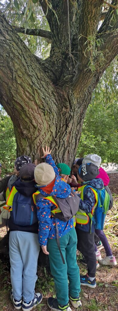 Dzieci poprzez symboliczny gest przytulenia się do drzewa, mogły poczuć więź z przyrodą i uświadomić sobie, jak ważna jest troska o wspólne dobro, jakim są lasy.