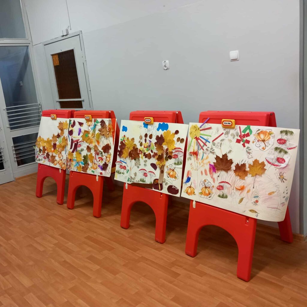 W październikowe popołudnie „Ślimaczki” wraz z rodzicami spotkały się na warsztatach, aby wspólnie wykonać pracę plastyczną „Park jesienią”.
