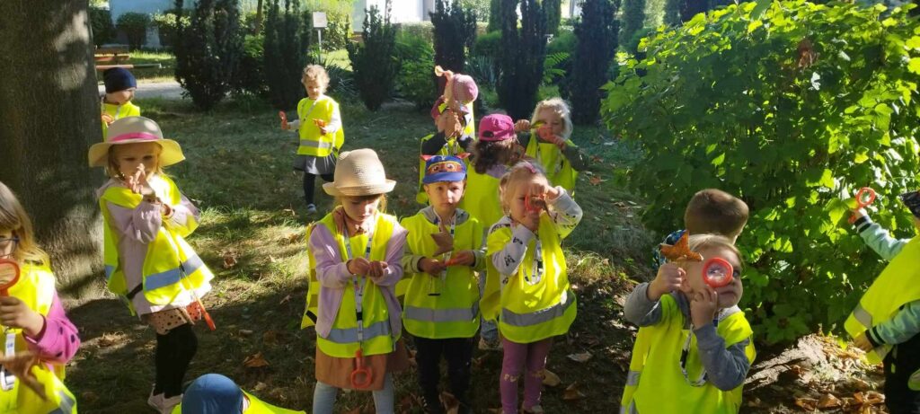 Dziś grupa ,,Biedronek” wyruszyła tropem pani Jesień, odnajdując wiele kolorowych śladów jej przybycia. Podczas naszego pierwszego jesiennego spaceru, zebraliśmy kolorowe liście do sali oraz zaobserwowaliśmy ciekawe zmiany w przyrodzie. Naszym odkryciom pomogły tablitowe lupy, dzięki którym mogliśmy zbadać każdy liść z bliska.