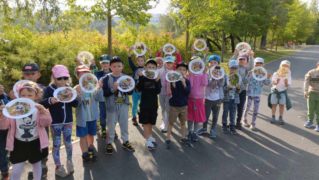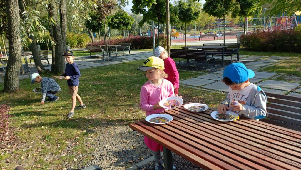 Najstarsza grupa ,,Pszczół” również postanowiła wybrać się na spacer, tworząc przepiękne, jesienne kompozycje. Kolorowe mozaiki zabraliśmy do naszego przedszkola 🙂