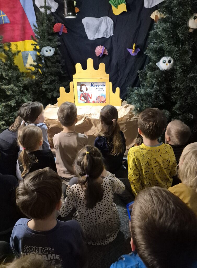 13.02.2026 r. przedszkolaki obejrzały teatrzyk kamishibai pt. „Kopernik i wirujące planety”. W trakcie przedstawienia wzbogaciły swoją wiedzę o kosmosie, poznając ciekawostki o planetach, ich ruchu i sposobie, w jaki krążą wokół Słońca. Dzieci również poznały postać słynnego astronoma – Mikołaja Kopernika, dowiadując się, jak jego odkrycia zmieniły sposób, w jaki patrzymy na wszechświat. Spotkanie było pełne fascynujących „kosmicznych odkryć” i zachęciło przedszkolaki do dalszego zgłębiania tajemnic planet.