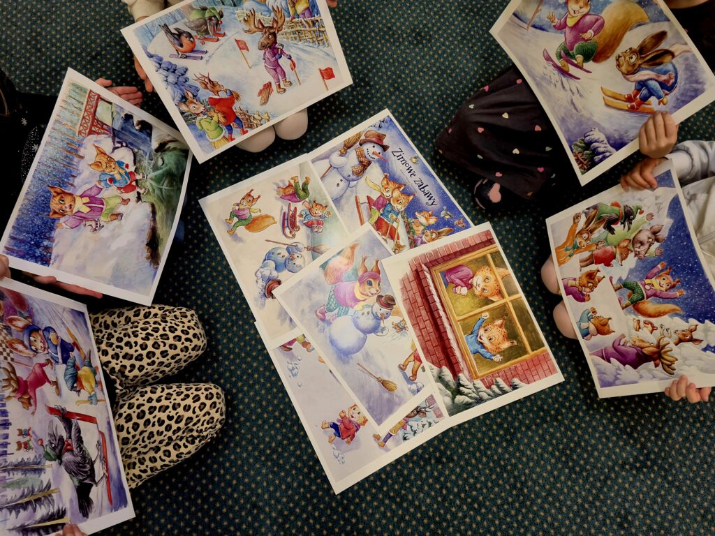 Dnia 29.01.2026 r. wszystkie przedszkolaki obejrzały teatrzyk kamishibai pt. „Zimowe zabawy”. Dzieci wzbogaciły swoje wiadomości n/t bezpiecznych zabaw na śniegu, a także utrwaliły właściwe zachowania wobec zwierząt w okresie zimowym, w tym ich dokarmianie. Teatrzyk był ciekawą formą wspólnego spędzania czasu oraz wspaniałą przygodą dla dzieci.